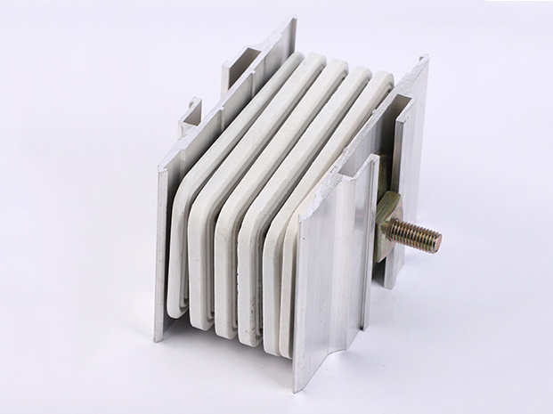 一種母線槽接頭器,它屬于母線槽配件,他包括有兩塊接頭側連板、絕緣隔板組、絕緣螺栓。
